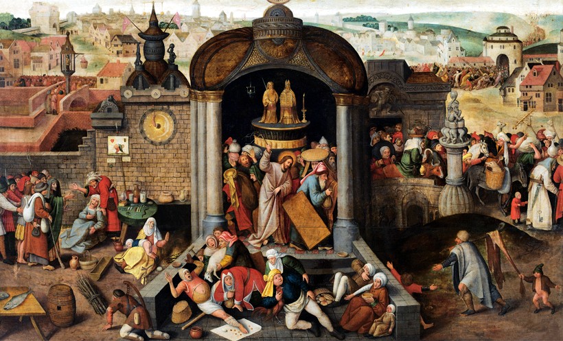 Na ilustracji: pochodzący z XVI wieku obraz nieznanego naśladowcy Hieronima Boscha „Chrystus wypędzający przekupniów ze świątyni”.