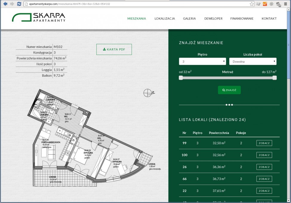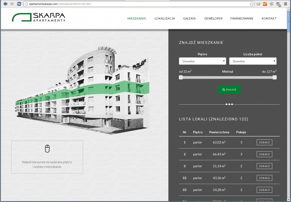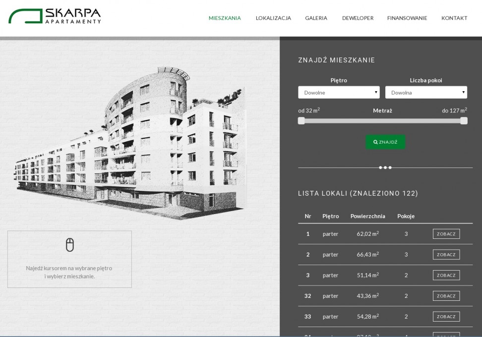 Tym razem - praca zespołowa. Mój zakres zadań to zasilana z bazy danych wyszukiwarka i przeglądarka mieszkań.