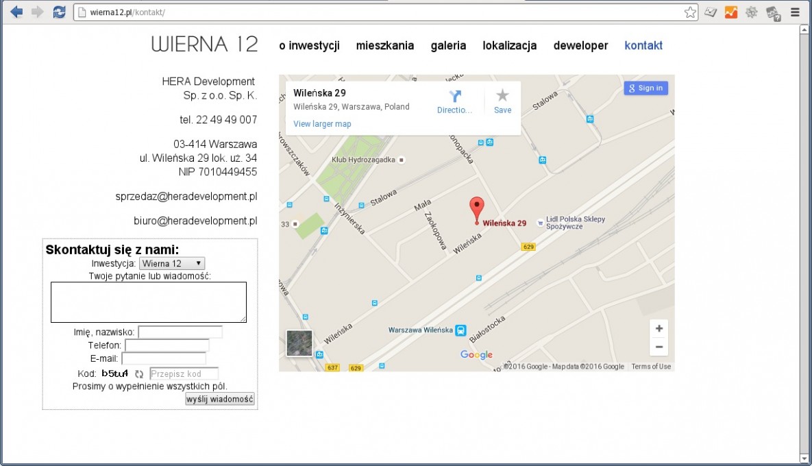 Inwestycja mieszkaniowa firmy Hera DevelopmentStrona-wizytówka inwestycji mieszkaniowej Wierna 12. Projekt: Gutek Zegier