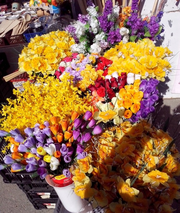 Portfolio gotowe, czas je wypełniać projektami i świętować. A że za oknami nieustanna burość w szare ciapki, dla kontrastu załączam zdjęcie wykonane wiosną na pobliskim bazarku. Butelka po Coca-Coli jest w tym towarzystwie rozczulająca. Kto wie, czy w poprzednim wcieleniu sama nie była plastykową różyczką?